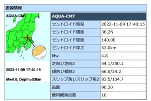 【#地震】茨城県城里町で震度5強(22/11/9)