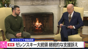 アメリカのホワイトハウスはウクライナのゼレンスキー大統領が、日本時間の22日未明アメリカの首都ワシントン郊外の軍の基地に到着したと、明らかにしました。 (以下略) |