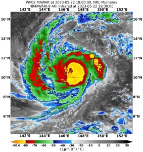 【#台風】#台風2号 猛発達中 905hPa発達予想へ(23/5/23)