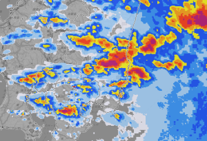 レーダー,真っ赤なエリアが通過中