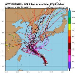 【#台風】台風6号 北上予想が出てきたの 沖縄付近でしばらく停滞予想もあるべ(23/7/31)