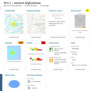 【#地震】アフガニスタンで三度目の被害地震発生 M6.3(23/10/1)