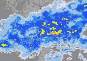 明日まで土砂降り予想.明日も出張じゃしのぉ
