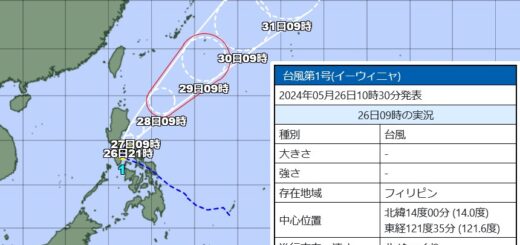 【台風】台風26号が発生しそうで.北上の恐れが少しあるの(25/11/5) 【2025年11月05日(水)】- 【台風】台風23号が宮崎をかすめて通過するべ.連休前半,天気がわるそう(25/10/10) 【2025年10月10日(金)】