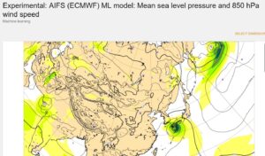 ECNWF-AIも九州,志布志湾~えびの市~熊本市~博多なコース取り