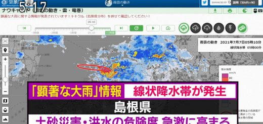 前線や低気圧の影響で秋田県などで雨雲が発達していて、気象庁は秋田県沿岸に線状降水帯が発生し非常に激しい雨が同じ場所に降り続いているとして「顕著な大雨に関する情報」を発表しました (以下略) |
