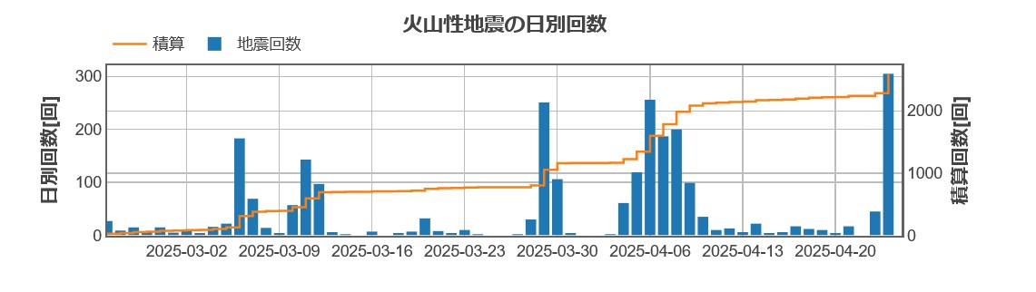 【霧島山】新燃岳:火山性地震数が24時間300回超えたーこれは人類滅亡キター(25/4/24)