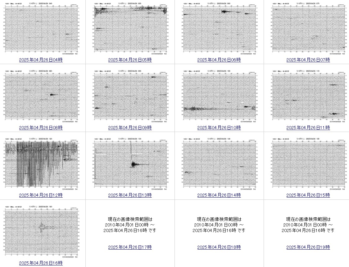 【霧島山】新燃岳:活発化してた火山性地震,ピタッと止まった(25/4/26)