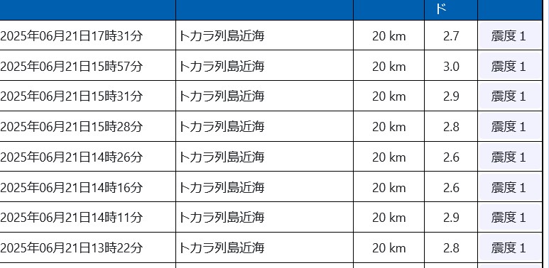 【緊急地震速報】トカラ列島で大規模群発地震中.これは7月5日案件の前兆..ドロドロドロ(25/6/21)