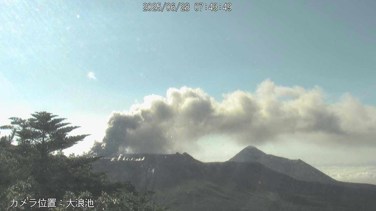 【霧島山】新燃岳:今朝も連続噴火継続中 今日は都城曽於市方面に噴煙が流れているべ(25/6/28)
