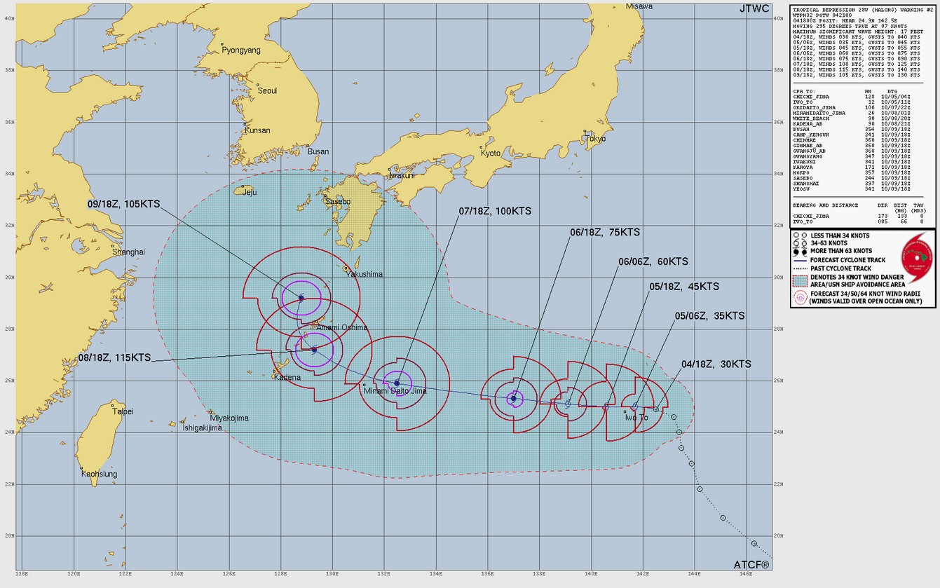 JTWC,最大瞬間風速で140ノット予想とかヤバス