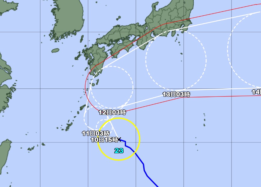 【台風】台風23号が宮崎をかすめて通過するべ.連休前半,天気がわるそう(25/10/10)