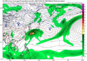 九州南部は強雨帯が通過しそうなAI予想も出ているし