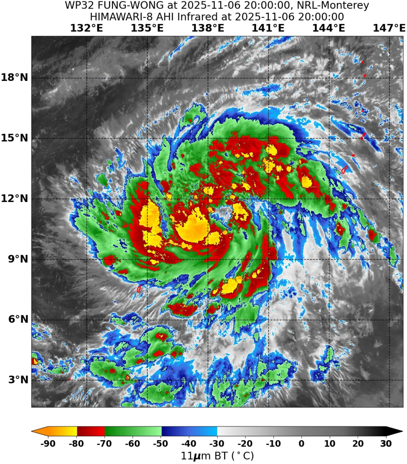 凶悪な面構え.こういう巻き方する台風は暴れるパターンよのぉ