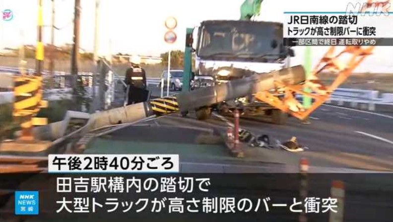 | JR日南線の踏切 トラックが高さ制限バーと衝突 運転見合せ