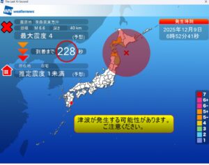 【緊急地震速報】青森県東方沖でM6.6(25/12/9)