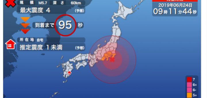 0 普通のニュース / 普通の日記 2019/6/24 月曜日 by くまさん · Published 2019/6/24 月曜日 【#緊急地震速報】千葉県南東沖 M5.7 深さ60km(19/6/24) おっと,ちょいデカ目 千葉県南東沖 M5.7 深さ60kmで速報中