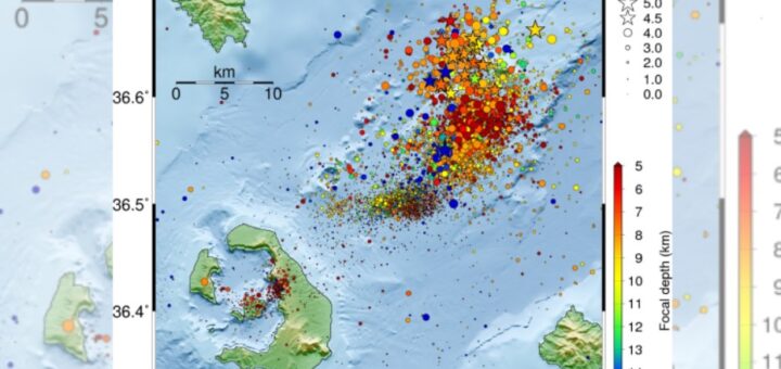 サントリーニ島北で超群発地震