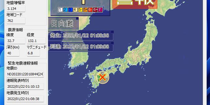6 地震火山 / 普通のニュース 2022/1/22 土曜日 by くまさん · Published 2022/1/22 土曜日 【#緊急地震速報】宮崎で震度5強キタ――(゚∀゚)――!!(22/1/22) スマフォが大音量で警報音鳴り響く! たたき起こされたぁ~~すんげぇ~...