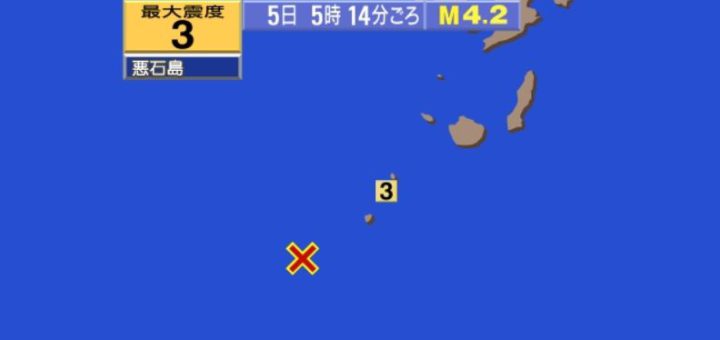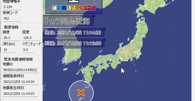 0 地震火山 / 普通のニュース 2021/12/5 日曜日 by くまさん · Published 2021/12/5 日曜日 【#緊急地震速報】トカラ列島近海 M5.0(21/12/5) うほっ! トカラ地震,緊急地震速報まで発報したヤバス
