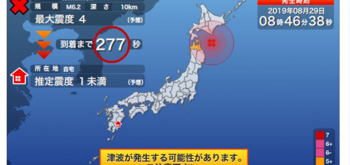 0 地震火山 / 普通のニュース 2019/8/29 木曜日 by くまさん · Published 2019/8/29 木曜日 【#緊急地震速報】青森県東方沖M6.2(19/8/29) 緊急地震速報が発報 海底地震計あたりに引っかかったのか?エライ早い発...