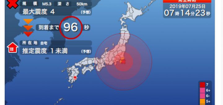 0 地震火山 / 普通のニュース 2019/7/25 木曜日 by くまさん · Published 2019/7/25 木曜日 【#緊急地震速報】千葉県東方沖 M5.3 深さ50km(19/7/25) ここ数日,房総半島付近が荒ぶってるなぁ~ 粒の大きな地震じゃげ