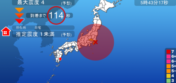 ぽつぽつと地震速報のアラームが鳴ってるが