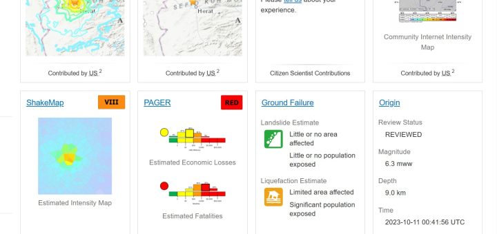 0 地震火山 / 普通のニュース 2023/10/11 水曜日 by くまさん · Published 2023/10/11 水曜日 【#地震】アフガニスタンで三度目の被害地震発生 M6.3(23/10/1) うへっ またアフガンで地震 前回と同規模 M6.3