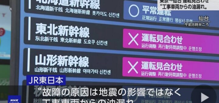 東北新幹線 東京~仙台 少なくとも午前中の運転見合わせ(24/4/2)