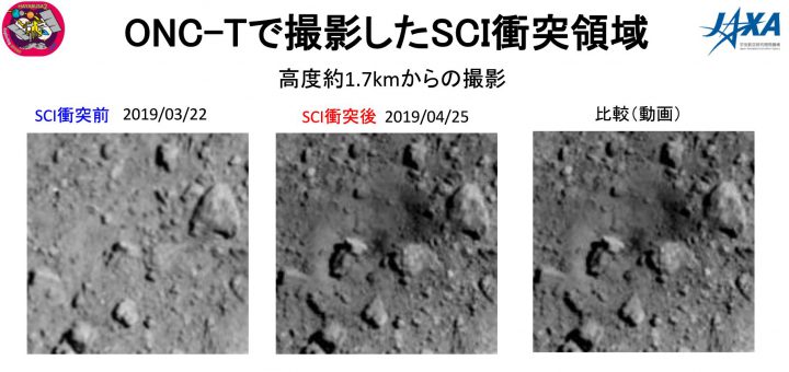 0 宇宙 / 普通のニュース 2019/4/25 木曜日 by くまさん · Published 2019/4/25 木曜日 【#はやぶさ2】爆破クレータの生成を確認! ぬぉ~~巨大な穴凹が出来てる 直径は10メートルある模様