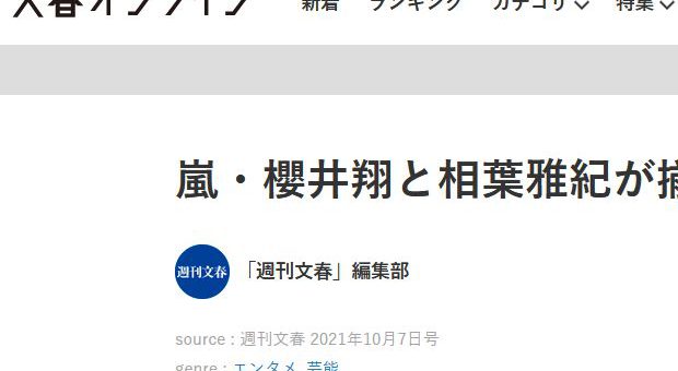 0 芸能スポーツのニュース 2021/9/28 火曜日 by くまさん · Published 2021/9/28 火曜日 嵐・櫻井翔と相葉雅紀が揃って入籍していた! 人類は滅亡するっ! な,なんだってぇ~~>ΩΩΩ Ω