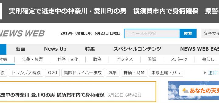 0 普通のニュース 2019/6/23 日曜日 by くまさん · Published 2019/6/23 日曜日 実刑確定で逃走中の神奈川・愛川町の男 横須賀市内で身柄確保(19/6/23) ようやっと捕まったかぁ 保釈金ボッシュートに新たな罪も加わったみたい...