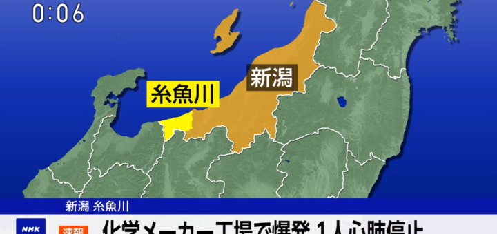 0 普通のニュース 2023/6/14 水曜日 by くまさん · Published 2023/6/14 水曜日 新潟:糸魚川で化学工場が爆発事故 一人が心肺停止(23/6/14) 今度は糸魚川で工場が爆発事故 日本全体あっちもこっちも爆発乱射と終末...