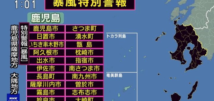 うひょぉ~ついに暴風特別警報発令予告>鹿児島県