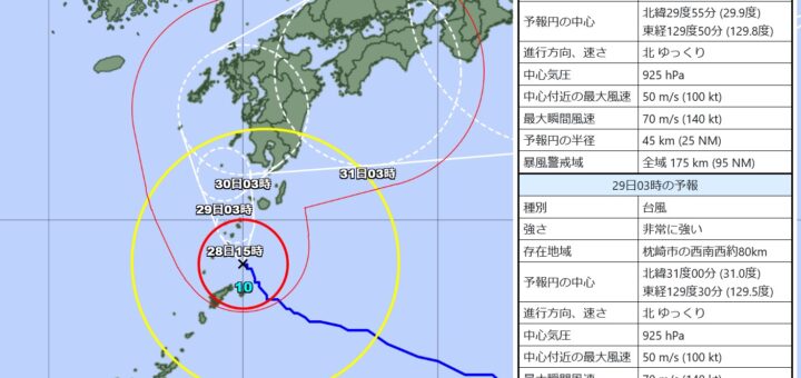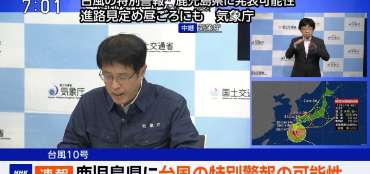 【#台風】台風10号:鹿児島県に暴風波浪特別警報 発令(24/8/28)