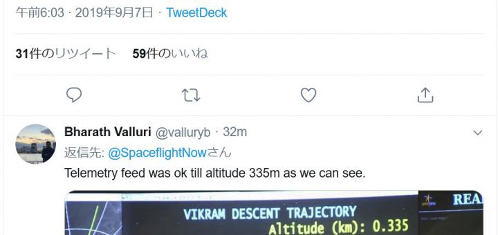 0 宇宙 / 普通のニュース 2019/9/7 土曜日 by くまさん · Published 2019/9/7 土曜日 【#月】インドの月着陸船「チャンドラヤーン2号」 通信途絶っぽい? 着陸した!ってツイートが流れてきたんで 確認に行ったら,2.1km上...