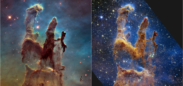 0 宇宙 / 普通のニュース 2022/10/21 金曜日 by くまさん · Published 2022/10/21 金曜日 【#JWST】ウェッブ望遠鏡、わし星雲「創造の柱」を鮮明に描き出す。ハッブルとの比較も ウエッブ望遠鏡,圧倒的に強い! すげーきれいな画像,解像度