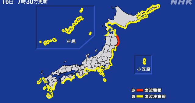 0 地震火山 / 普通のニュース 2022/1/16 日曜日 by くまさん · Published 2022/1/16 日曜日 【#tonga】トンガ巨大噴火:太平洋岸全域に津波警報,注意報発令中(22/1/16) 0時ちょい,津波警報発令なスマフォ鳴動で叩き起こされた(汗 警報注意...
