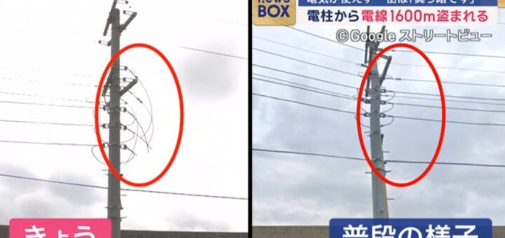 電柱から電線1600m盗まれる 電気が使えず…街は「真っ暗です」