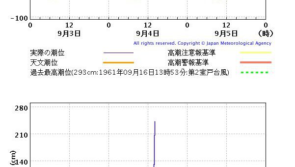 0 普通のニュース / 気象 2018/9/4 火曜日 by くまさん · Published 2018/9/4 火曜日 【#台風 1821号】大阪湾の潮位が「第2室戸台風」の記録を突破(18/9/4) ぬぉ~3メートルも潮位が上がってる 大津波警報級じゃねぇ~かヤバイ