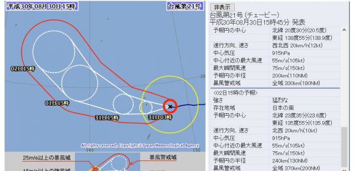 6 気象 2018/8/30 木曜日 by くまさん · Published 2018/8/30 木曜日 【#台風 1821号】915hPa 55メートルの猛烈台風予想(18/8/30) お~猛烈予想が出たかぁ これ,風速60メートルまで行きそうな,中心部...
