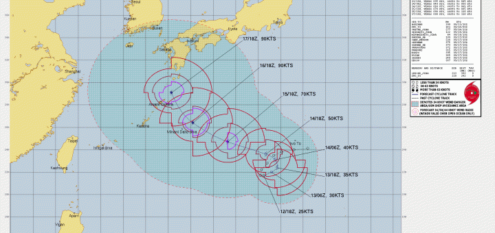 0 普通のニュース / 気象 2022/9/13 火曜日 by くまさん · Published 2022/9/13 火曜日 【#台風】仮14号 そこそこ発達する予想が出てるの(22/9/13) JTWCの第一報が来たの 九州南で90ノットの風予想