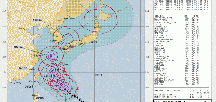 0 普通のニュース / 気象 2018/10/3 水曜日 by くまさん · Published 2018/10/3 水曜日 【#台風 1825号】更に北上中:こりゃ大雨警戒コースじゃな(18/10/2) どうやら対馬海峡通過かのぉ でかくない台風やし,このパターン,宮崎は...
