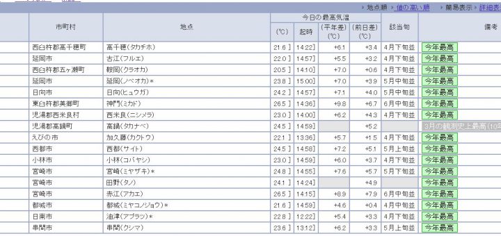 0 普通のニュース 2019/3/21 木曜日 by くまさん · Published 2019/3/21 木曜日 【#地球温暖化】さらにバカ陽気キター 26℃超え!6月中旬並み@宮崎(19/3/21) アメダスデータ,今書き換わった!26℃超えたヤバスヤバス 人類滅亡級...