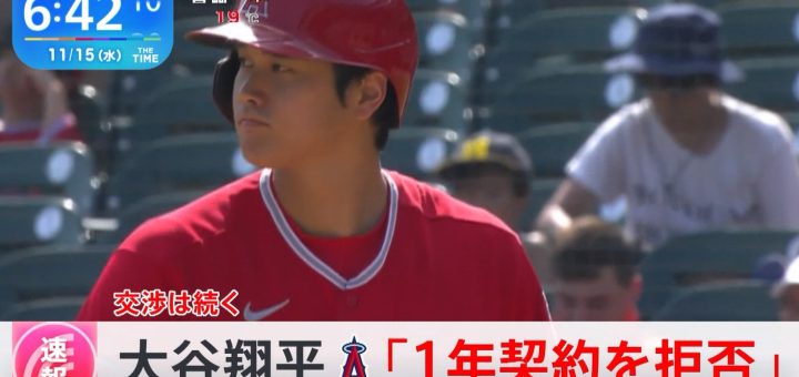 0 芸能スポーツのニュース 2023/11/15 水曜日 by くまさん · Published 2023/11/15 水曜日 大谷翔平:1年契約を拒否だそうな(23/11/15) あんれ,大谷さん,エンゼルスとの契約を一旦蹴ったべ これで他の球団との本格交渉に入りそうじゃのぉ