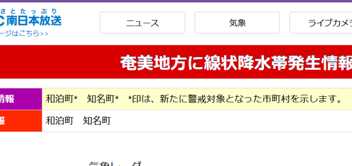 0 普通のニュース / 気象 2023/6/19 月曜日 by くまさん · Published 2023/6/19 月曜日 【#大雨】奄美地方で線状降水帯発生 引き続き非常に激しい雨おそれ 20日明け方にかけ厳重警戒(23/6/19) 奄美は梅雨明け直前の大雨やなぁ 線状降水帯も出てるし