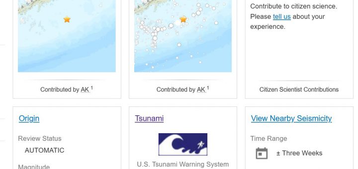 0 地震火山 / 普通のニュース 2021/7/29 木曜日 by くまさん · Published 2021/7/29 木曜日 【#大地震】アラスカ沖でM7.3 深さ3km(21/7/29) こりゃまた,浅い地震 メカニズムが見たいが,まだ上がってこないべ