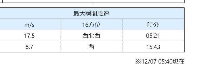 2 普通のニュース / 気象 2023/12/7 木曜日 by くまさん · Published 2023/12/7 木曜日 風が強いな,オイ! 外が暴風域突入レベルで風吹いてる 宮崎空港で,瞬間18メートル近く出てるの さきほど,寒冷前線が通過したっぽい