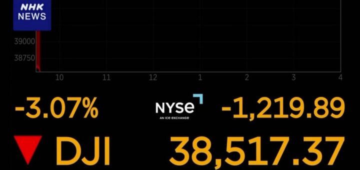 【#株価】NYダウ 約1年11か月ぶり1000ドル超の急落 景気減速懸念 背景に(24/8/6)