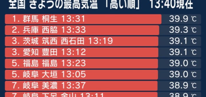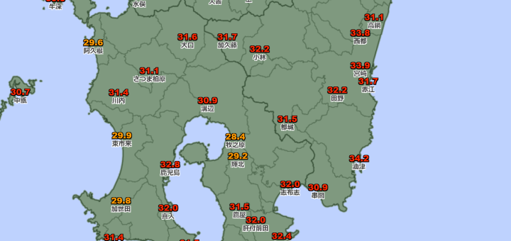 0 気象 2025/7/29 火曜日 by くまさん · Published 2025/7/29 火曜日 【危険な暑さ】東北~九州にかけ危険な暑さの見込み 熱中症への対策徹底を(25/7/29) 宮崎は30℃しかない(爆 群馬の桐生なんか40℃やし,宮崎と北海道以外は全部,危険な暑さ 40℃が当たり前の時代やねぇ 結果,具合も悪くなるってもんよ